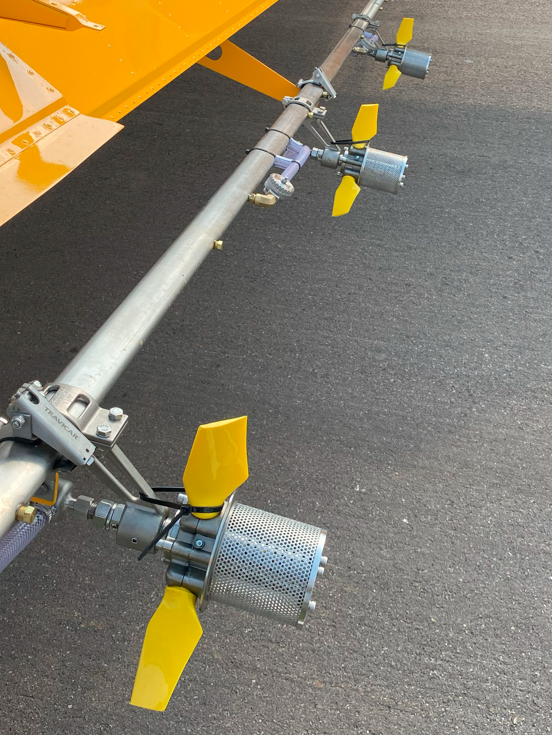 Developed with cutting-edge technology, the Total Inox Travicar stands out for its 100% stainless steel construction, ensuring extreme resistance against chemical wear, abrasion, and high temperatures; longer lifespan with components designed to withstand long operating hours without frequent maintenance; superior stability proven through wind tunnel testing in the United States, offering consistent and uniform droplet formation; and advanced protection with an exclusive design that minimizes wind impact, preserving droplet size, especially in turbo aircraft.